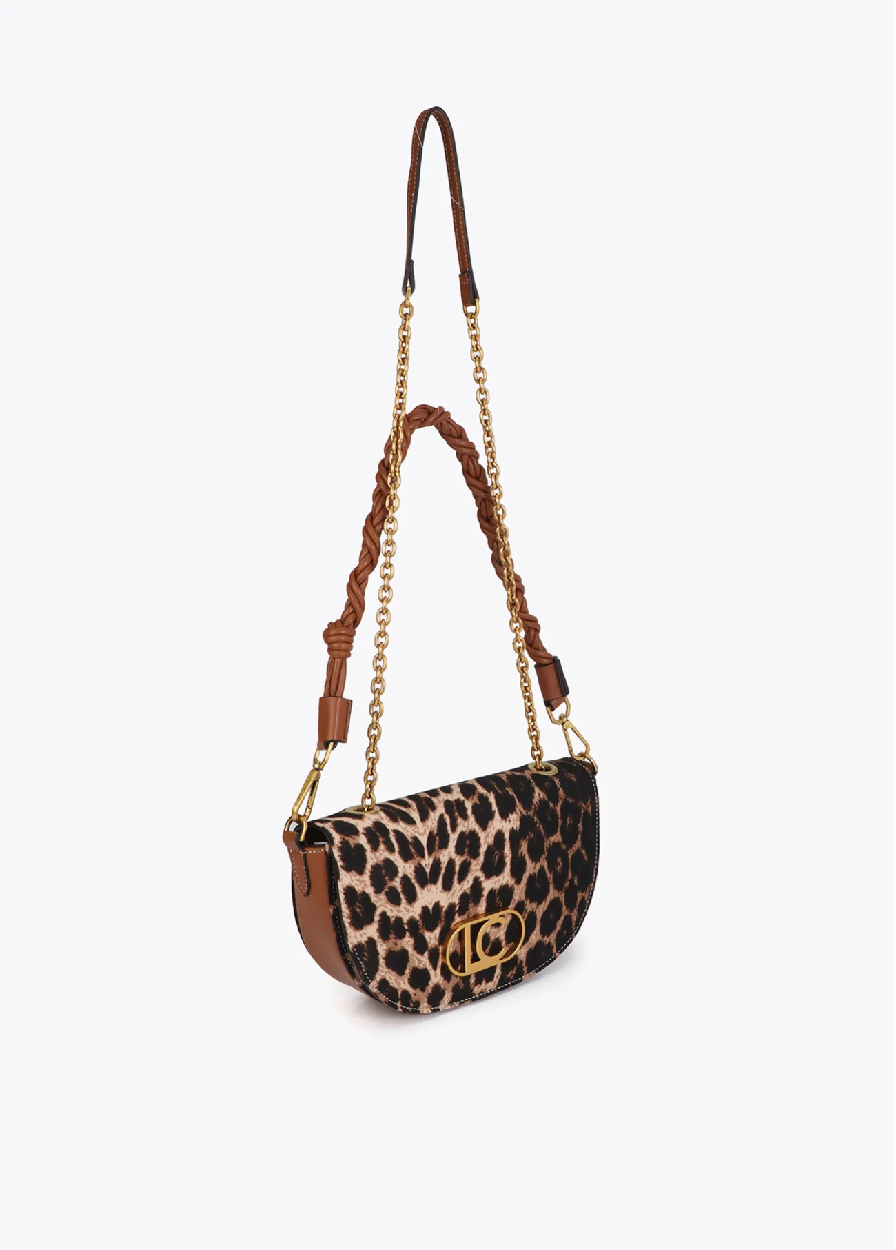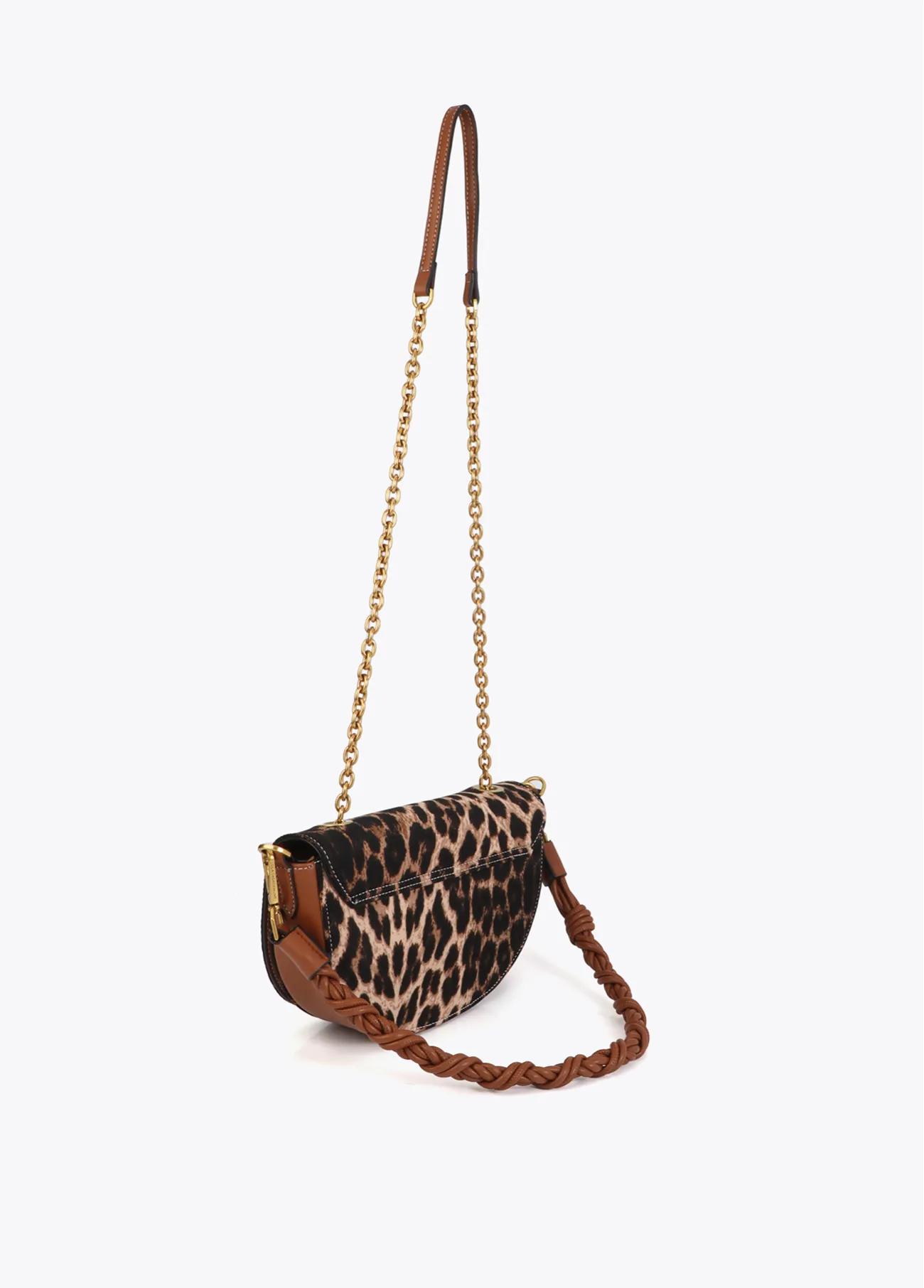 Faux leather and leopard half-moon bag