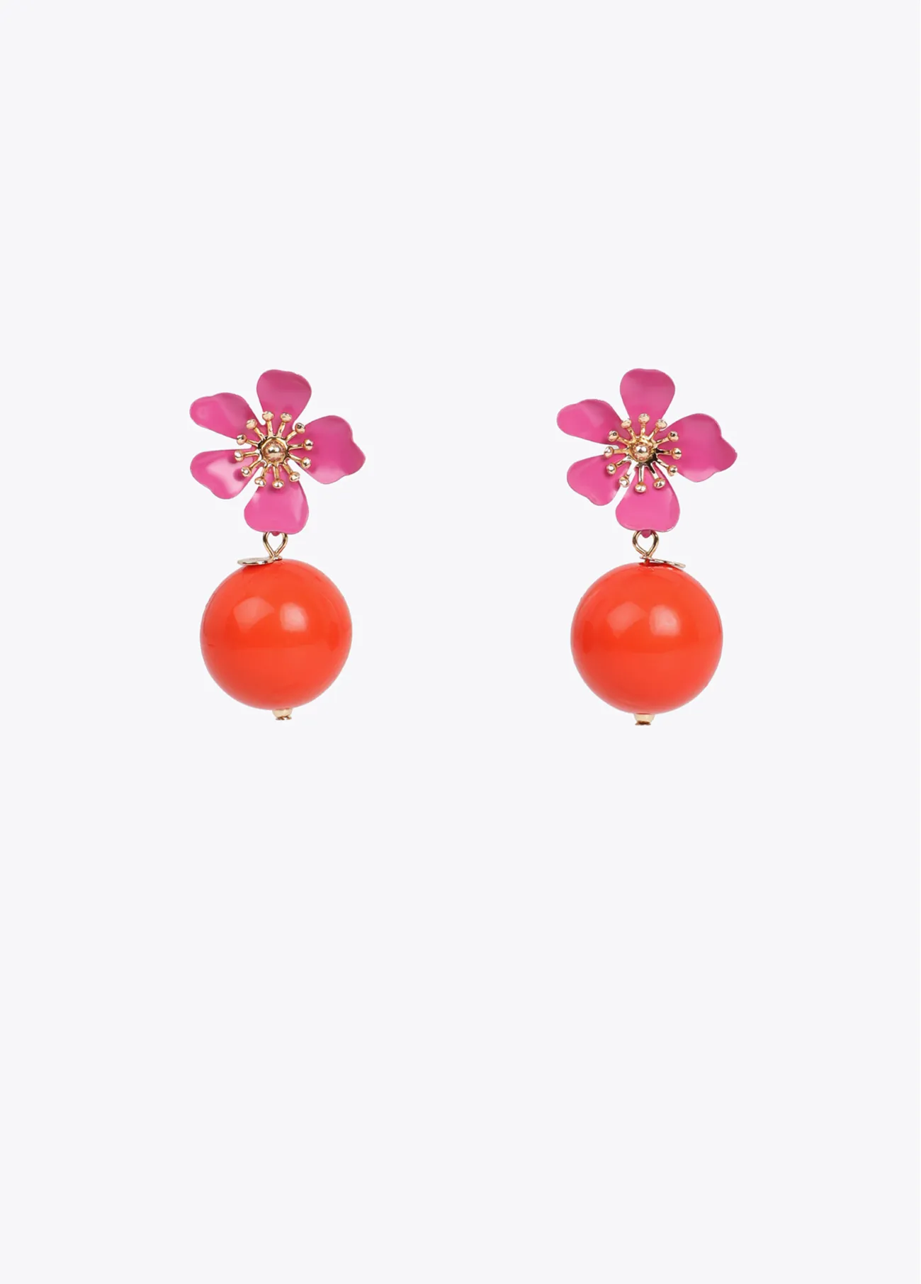 Contrast earrings with lacquered metal flower