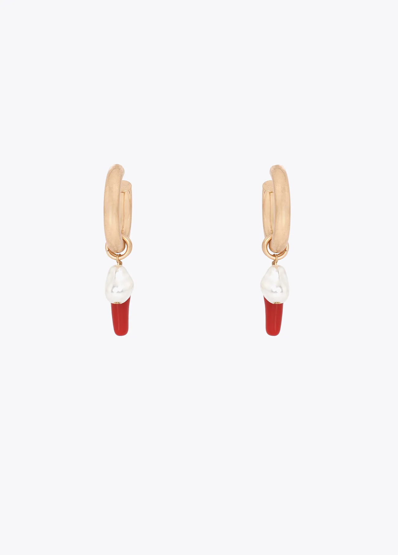 Hoop earrings with coral and faux pearl charms