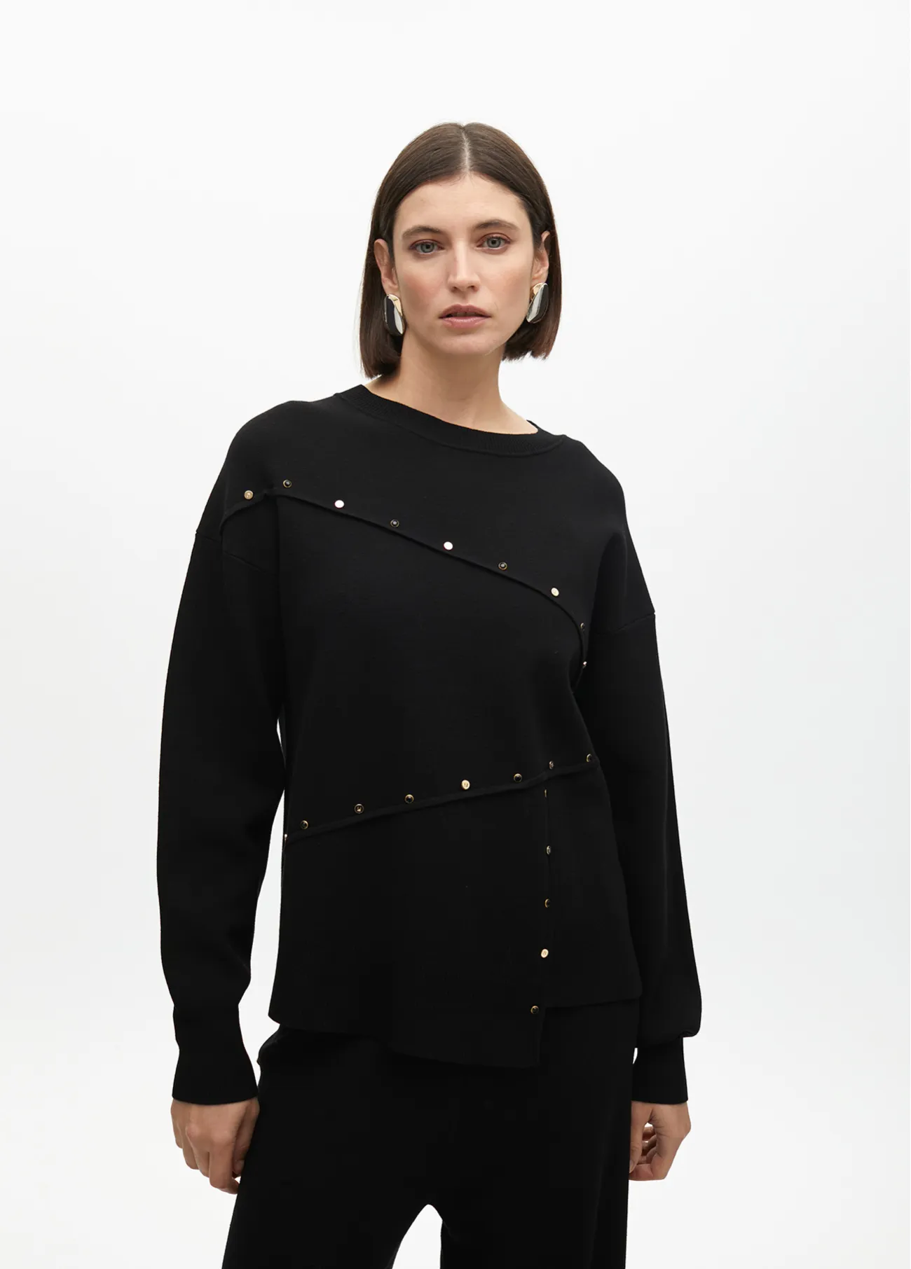 Deconstructed sweater with stud details