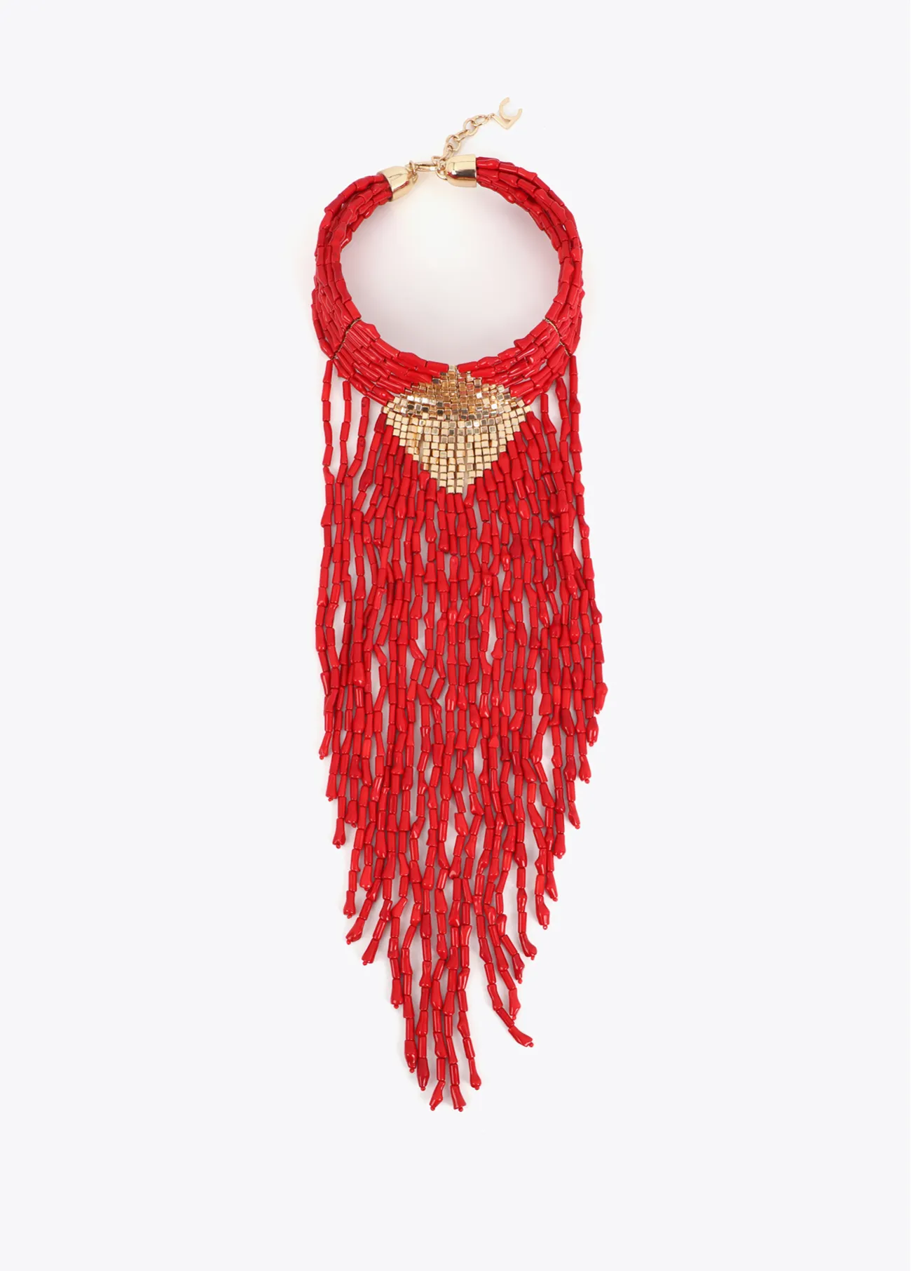 Coral beaded cascade necklace