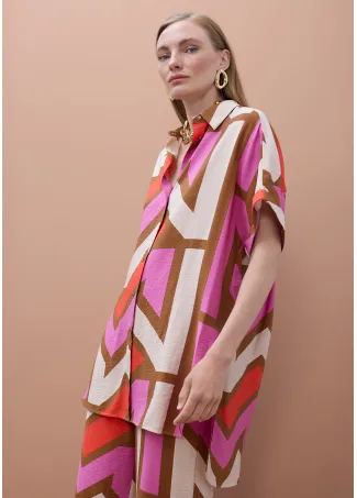 Este pantalón culotte presenta un diseño fluido con un estampado geométrico audaz en tonos vivos. Confeccionado en tejido ligero para garantizar comodidad y estilo. Cintura elástica y corte amplio que favorece cualquier figura, ideal para un look casual.