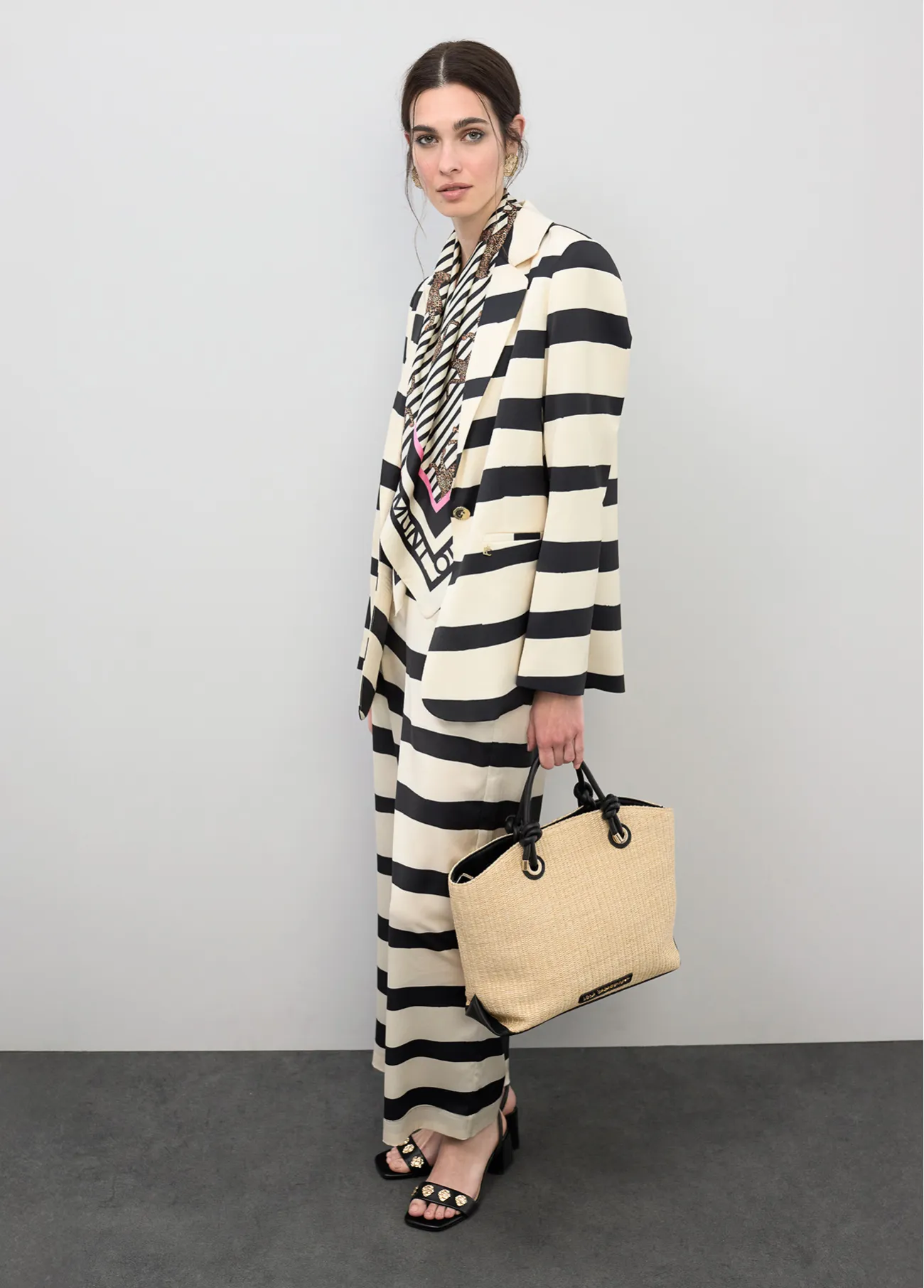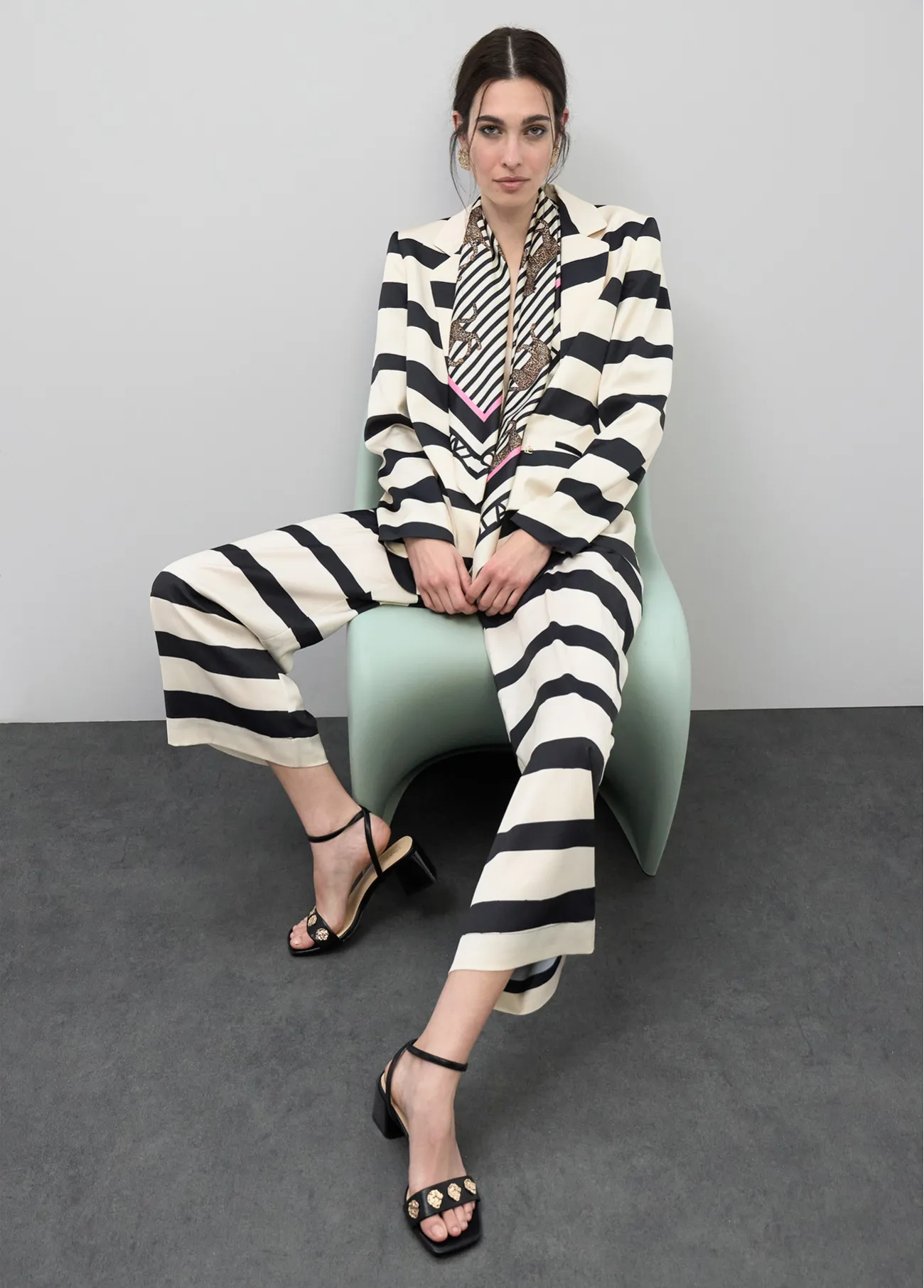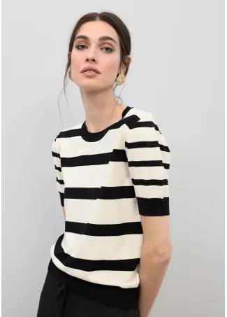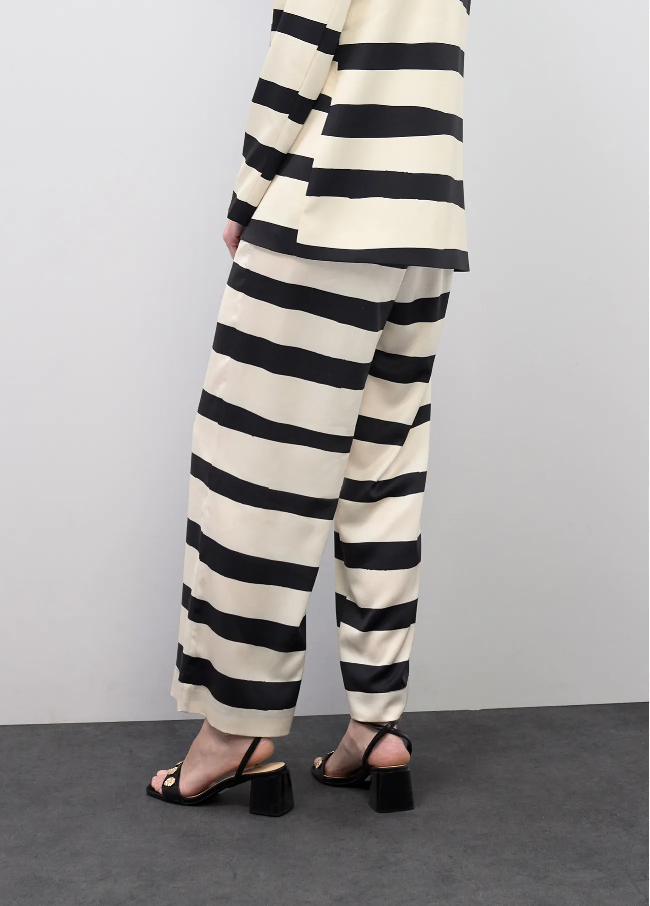 Culotte satinado de rayas en blanco y negro