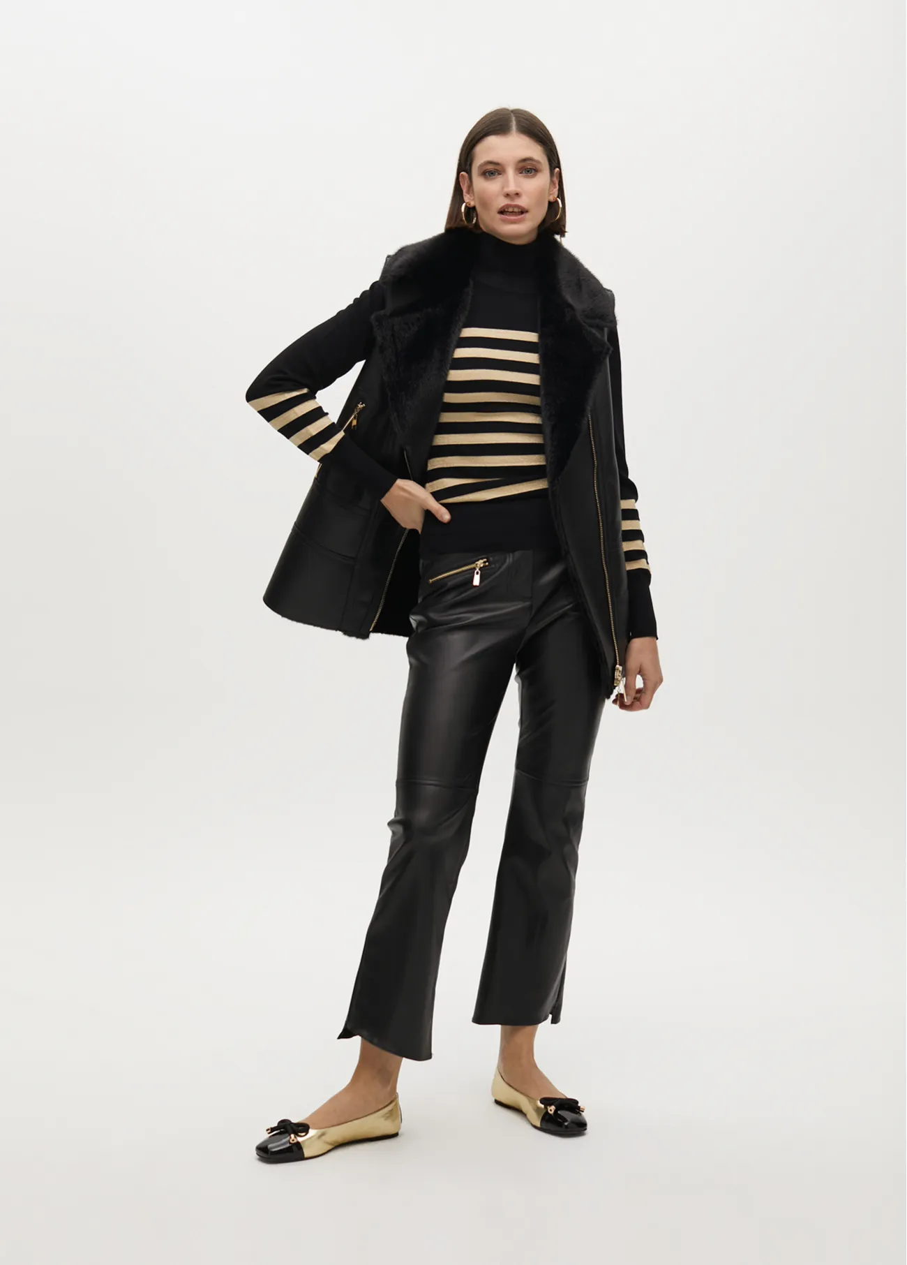 Jersey cuello alto rayas doradas con detalle...