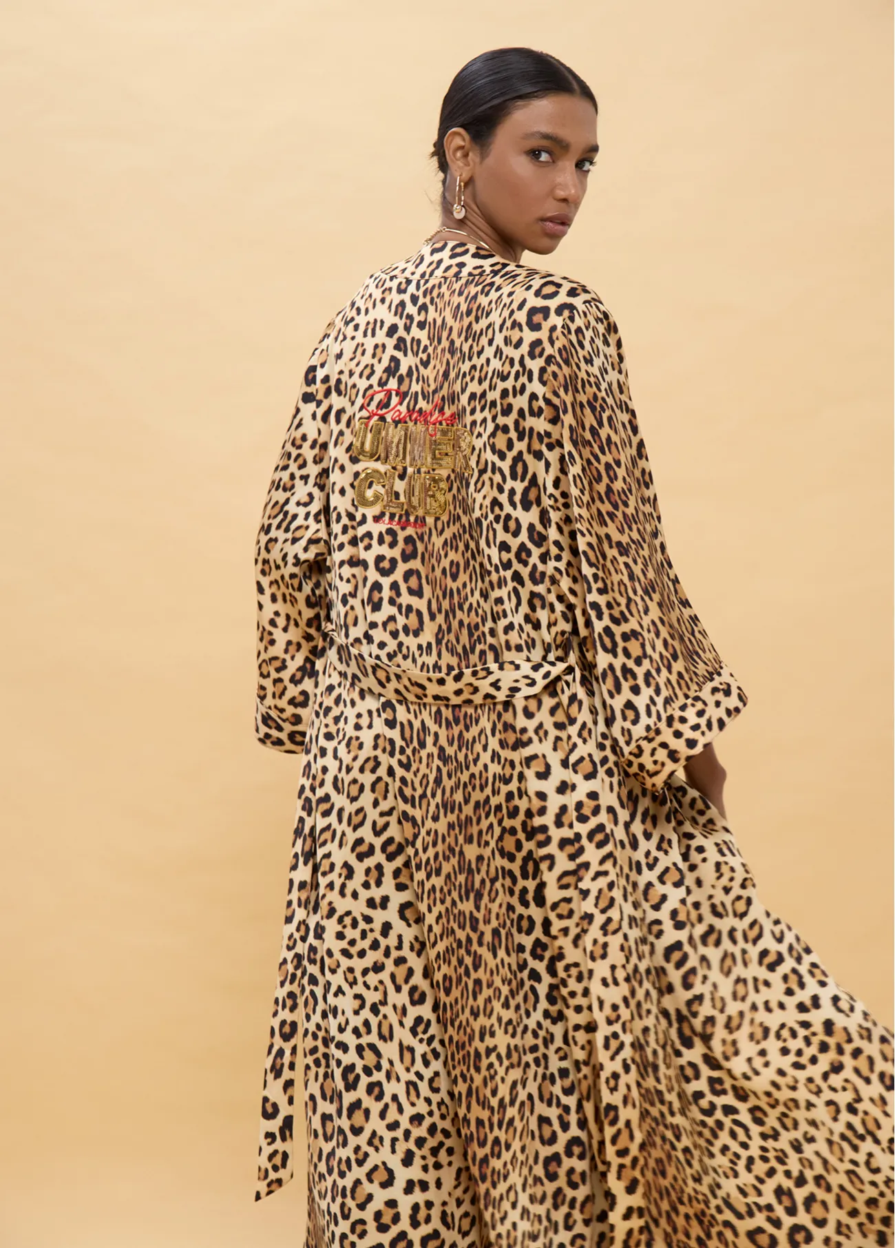 Kimono largo con estampado animal y cinturón ajustable. Tejido ligero y fluido, ideal para añadir un toque salvaje a cualquier look. Este kimono presenta una espalda adornada con detalle metálico, perfecto para destacar en cualquier ocasión con estilo.